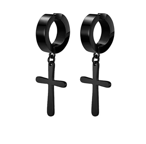 Con un diseño minimalista pero con presencia, estos aros en acero inoxidable negro incluyen una cruz colgante pulida, símbolo de fuerza, estilo y actitud. Son livianos, cómodos y resistentes al desgaste, ideales para uso diario o para destacar en fiestas, conciertos o salidas nocturnas.