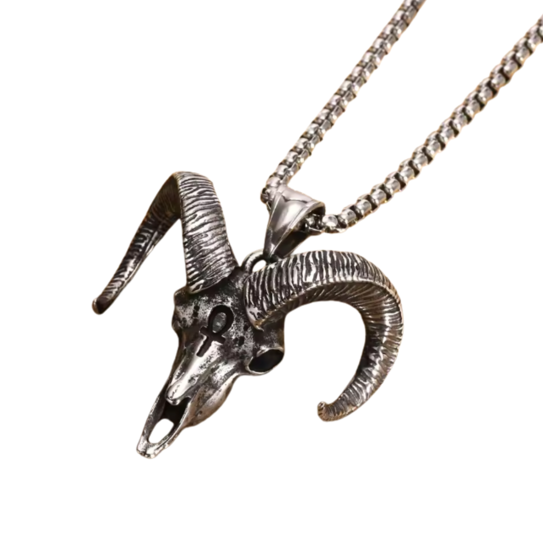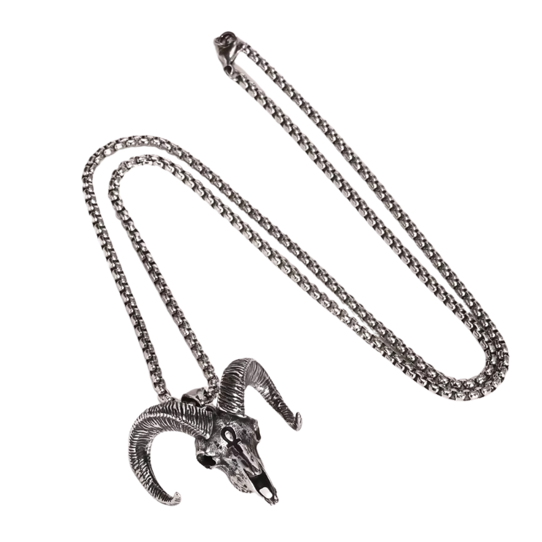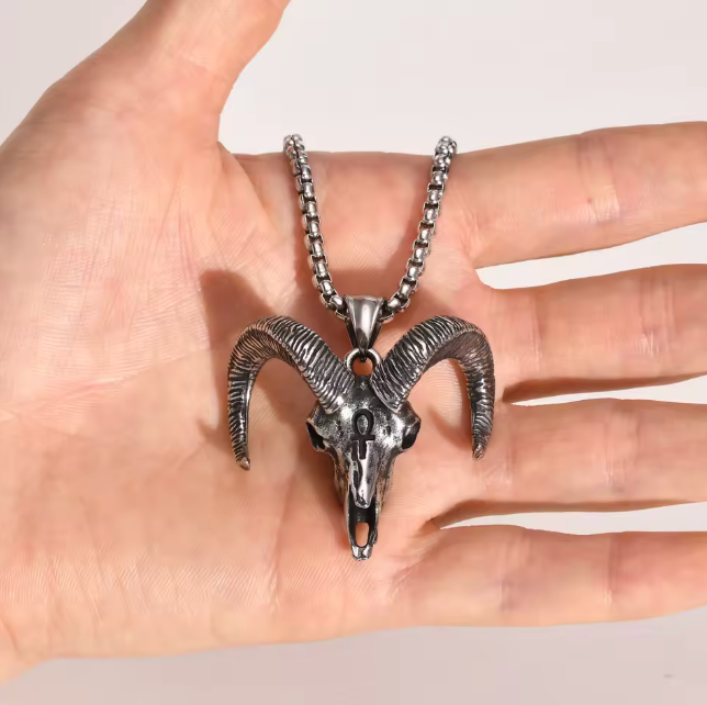 Imponente, simbólico y lleno de carácter, el collar GOAT es el accesorio definitivo para los que viven sin miedo a destacar. Su colgante de cráneo de carnero con cuernos retorcidos transmite una vibra oscura, rebelde y poderosa, perfecto para quienes abrazan un estilo punk, urbano o alternativo.
