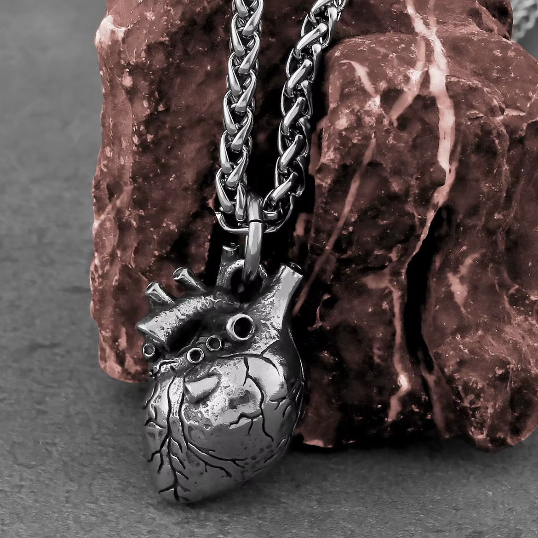Este colgante de corazón anatómico en acero inoxidable 316L, con un nivel de detalle brutal y un peso que se siente real, es ideal para quienes viven con intensidad, sienten profundo y no tienen miedo de mostrarlo. Una pieza perfecta para almas apasionadas, amantes del diseño anatómico o simplemente quienes saben que el corazón es el motor de todo.