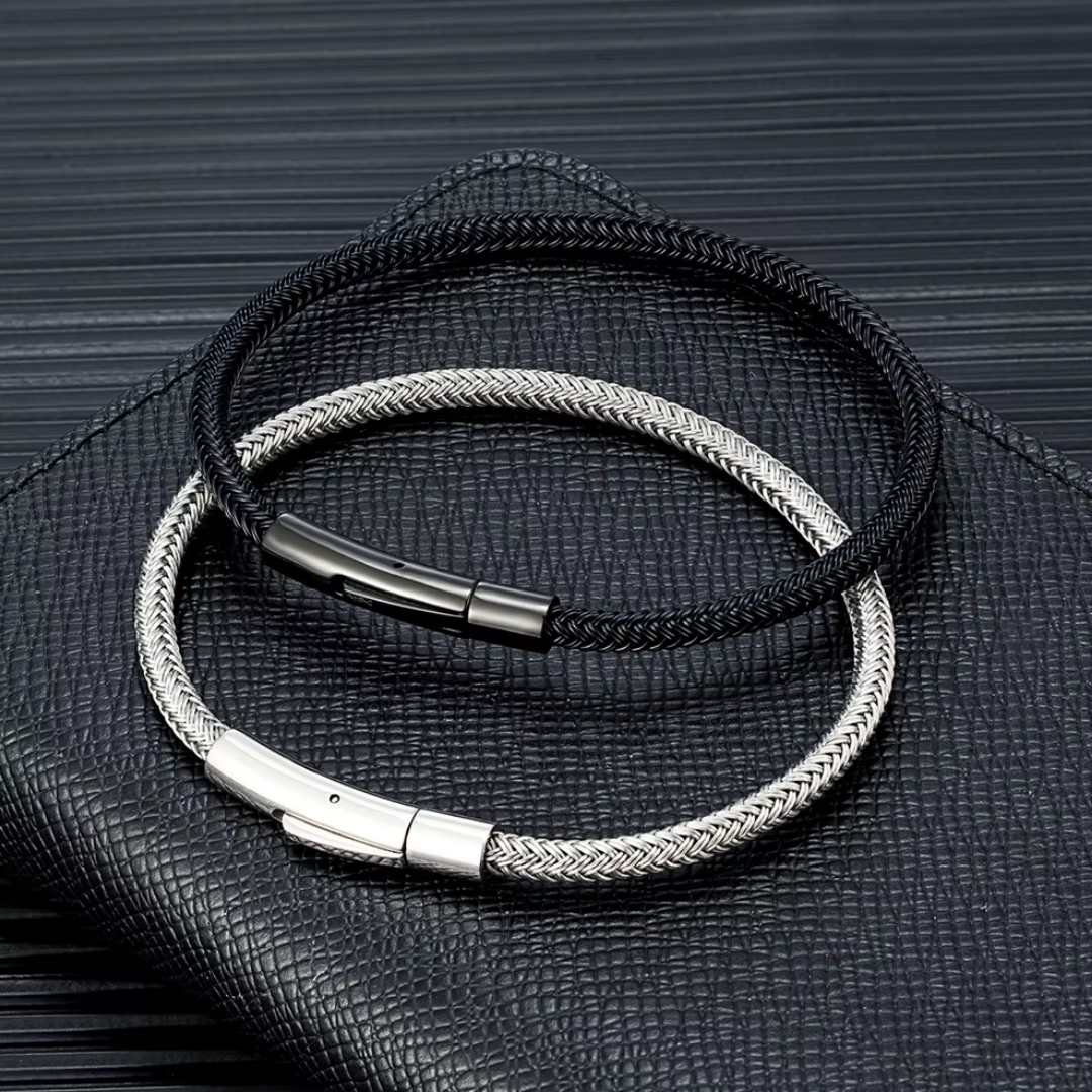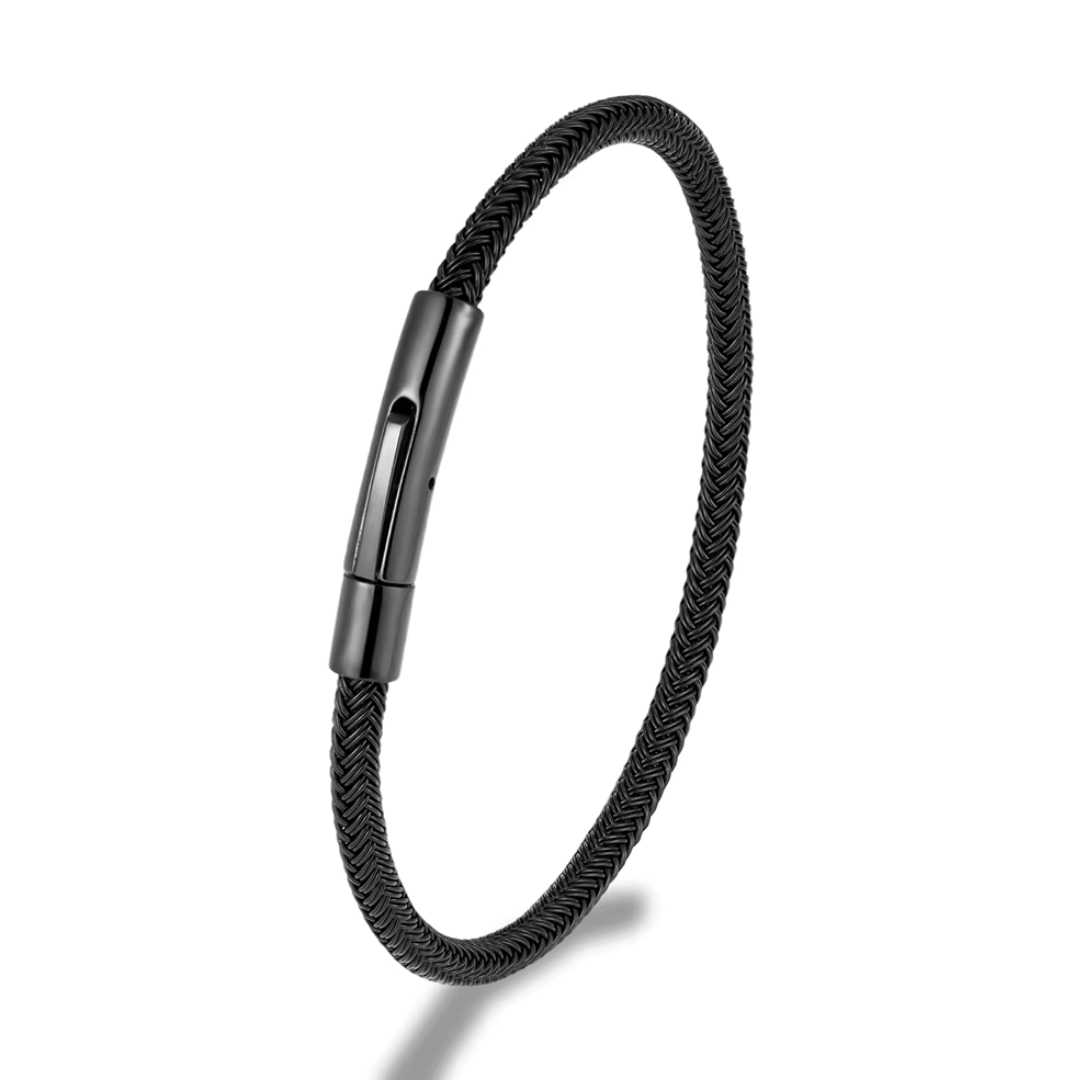 Minimalista, elegante y con carácter. Simple Steel Black está hecha con acero inoxidable de alta calidad y una estructura de cable de acero entrelazado que le da ese look industrial y moderno perfecto para cualquier ocasión.
