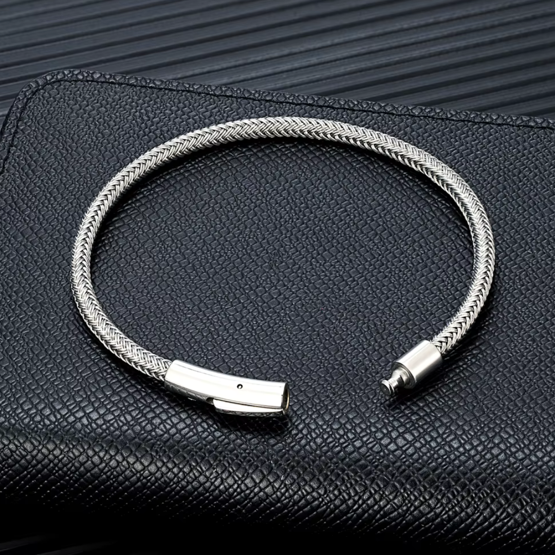 Minimalista, elegante y con carácter. Simple Steel Silver está hecha con acero inoxidable de alta calidad y una estructura de cable de acero entrelazado que le da ese look industrial y moderno perfecto para cualquier ocasión.